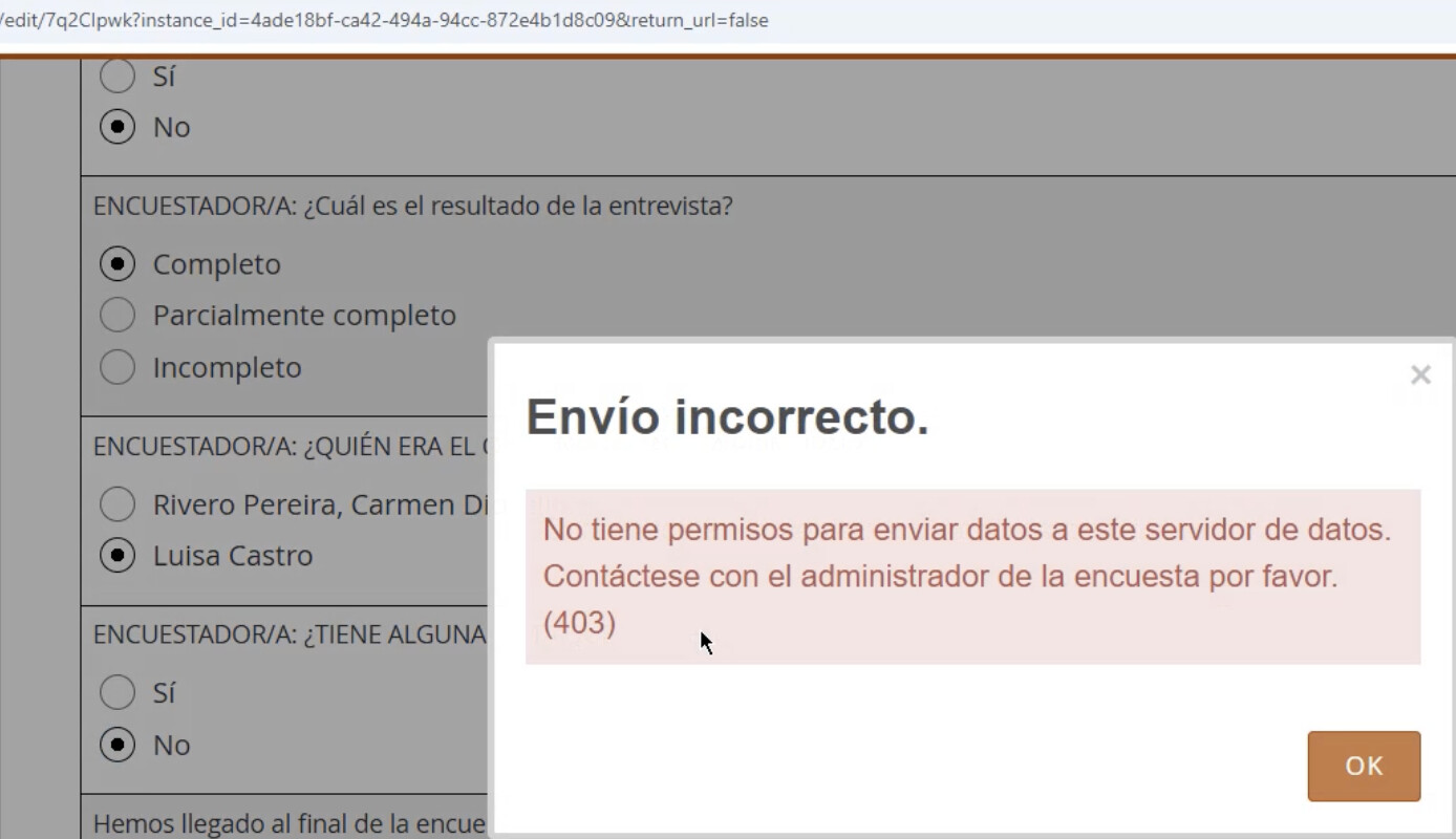 “Not allowed to post data to this data server. Contact the survey administrator please. (403)”