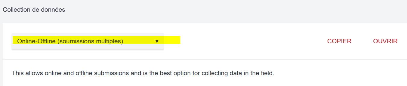 To try this out ? You can click “Next” until you see this question “Dans combien de zone d’intervention votre organisation est elle présente ?”, then you fill the box with “1” before clicking on “Next”; You may suppose to see an map of the far north region of Cameroun with clickable area.