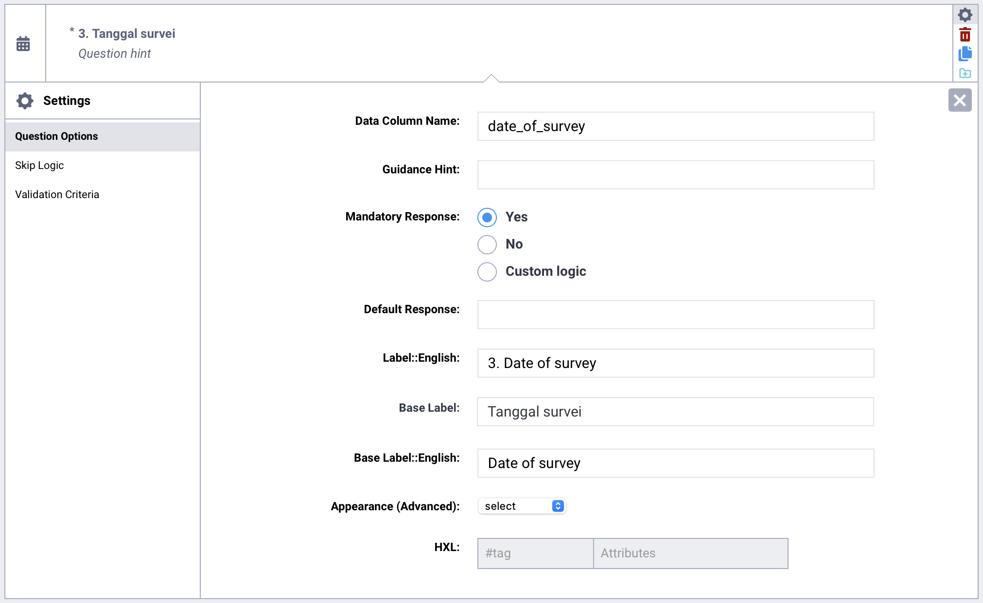 I am inheriting a bunch of old surveys and trying my best to clean and organize our entire surveying process. For each question in our existing surveys, there is a “label” as well as a “base label” in both the default language, and in English.