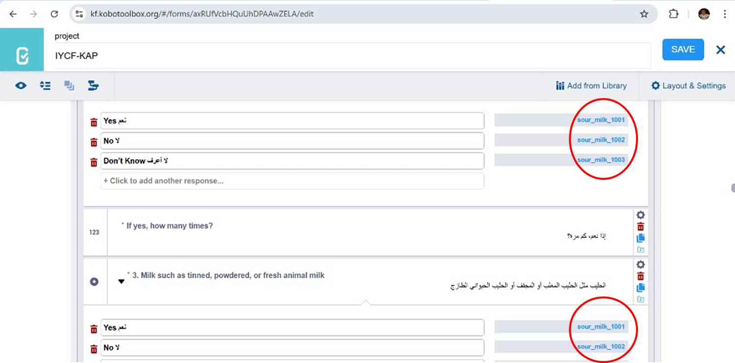 - When you retrieve questions from the library, Kobo copies the original question with the same internal choice names.