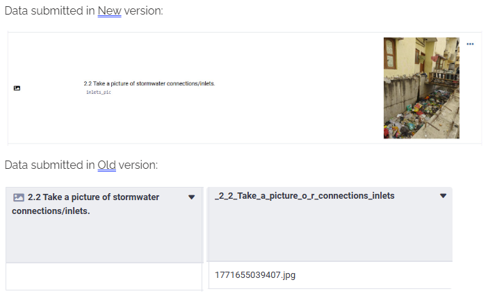 For the data submitted using the old version of the form while the new one was deployed: