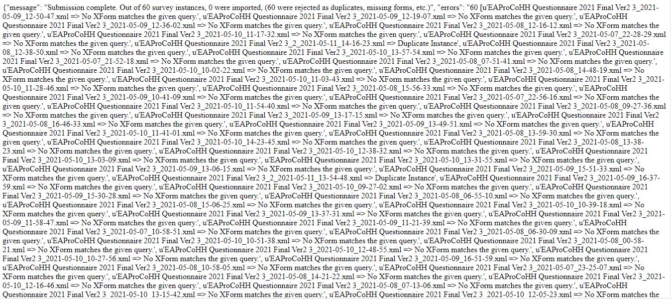 This is the message I get after trying the bulk submission but I want also try from other enumerators instances