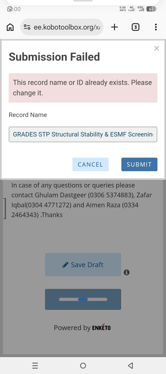 One of these inspectors have first used his mobile (android) and then reentered the survey on his laptop and get the same error!
