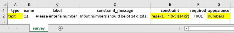Maybe you should replace your regex from regex(., ‘^\d{15}$’) to regex(., ‘^\d{14}$’) in order to control the entry to 14 numbers.