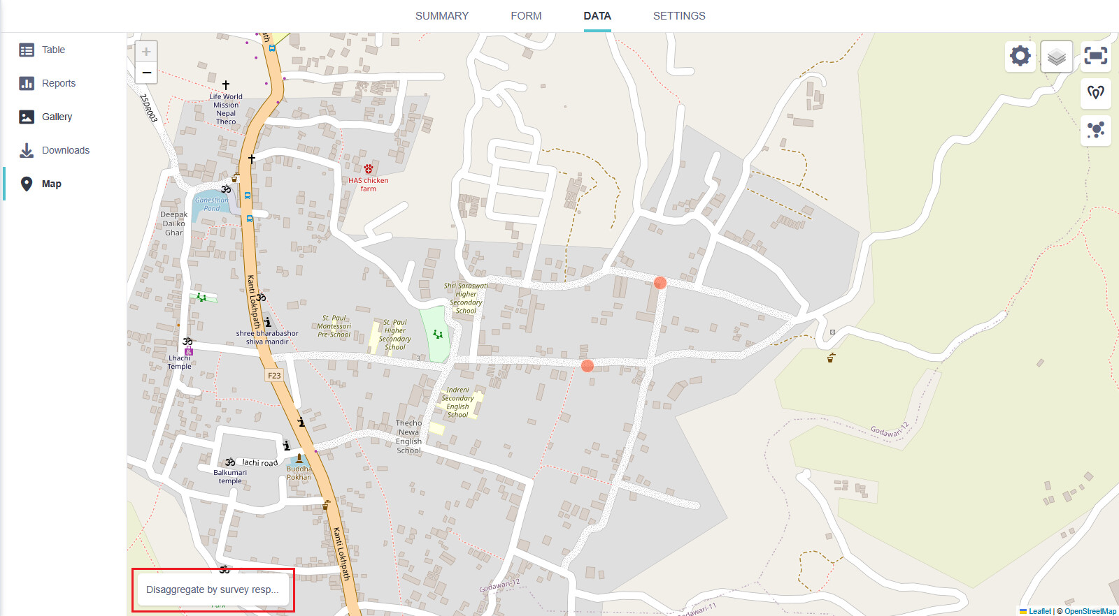 Welcome back to the community, @karenvdw! If you have a date question type along with a geopoint question type, then you could filter your location in a map by selecting Disaggregate by survey resp... as shown in the image below: