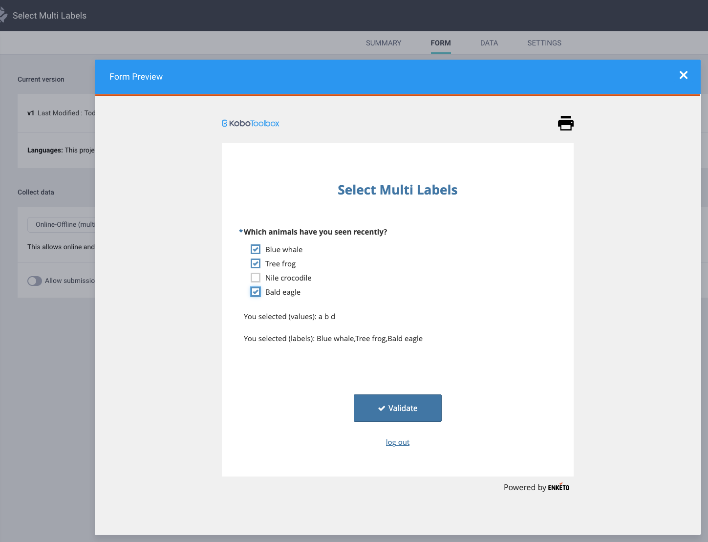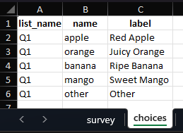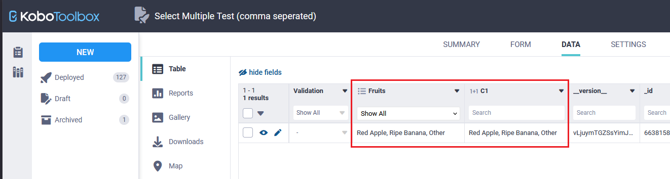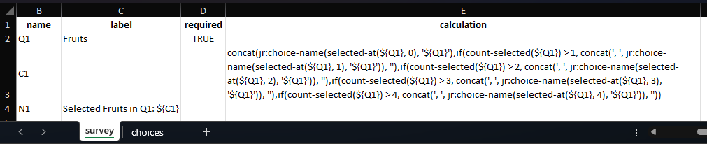 I don’t get comma separated values in the Select many answers. They’re only separated by a space, which can be confusing if the options themselves are composed by multiple words (naturally separated by spaces).