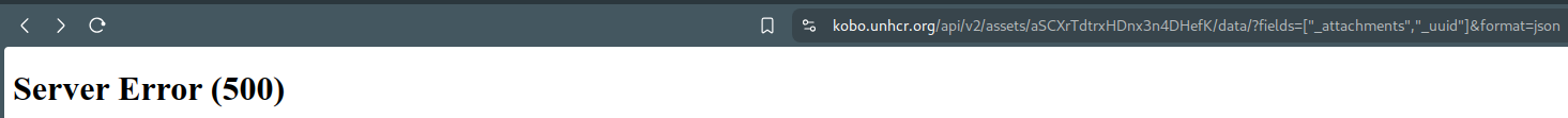 Hmm that’s interesting. It works on the Global server (kf.kobotoolbox.org) but I see that it still fails on the UNHCR server. I’ve informed the dev team about it