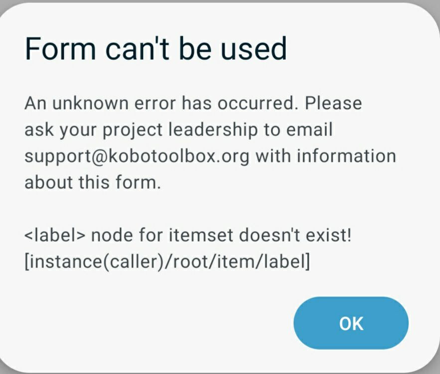 Dear Kal, thanks for your guidance. The form successfully deployed however when opening the form on kobo collect it says “Form can’t be used” node for itemset doesn’t exist!