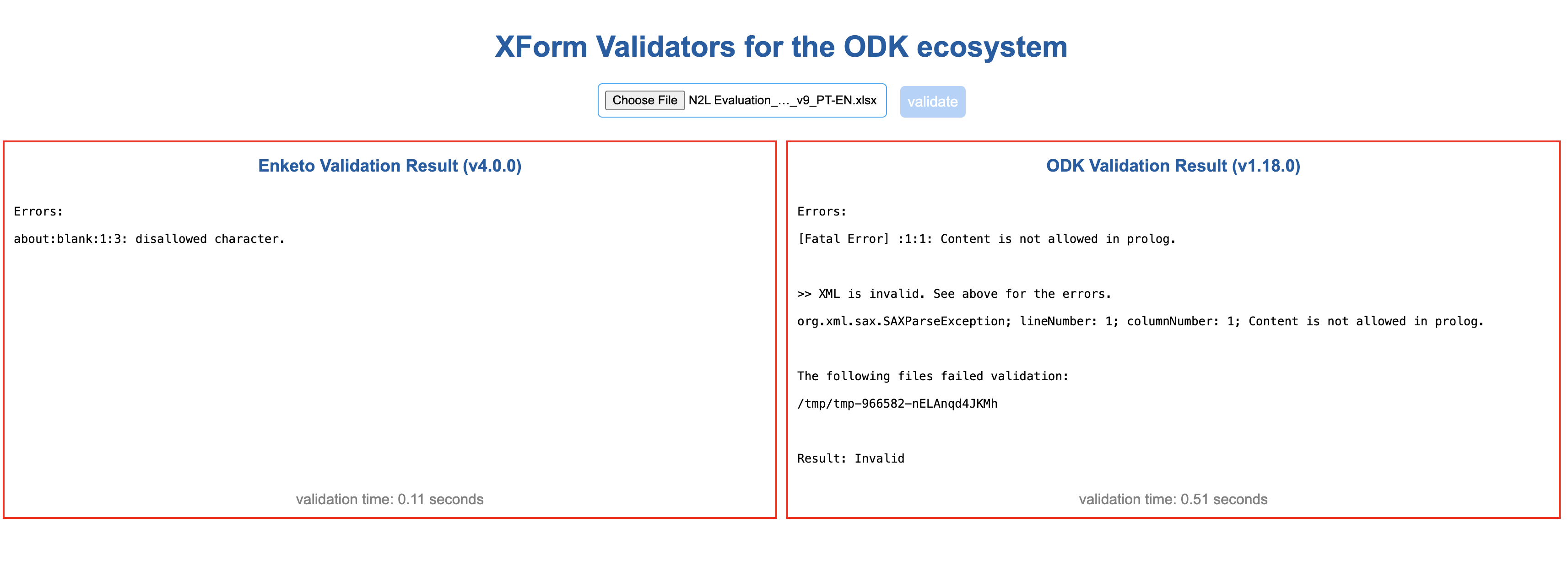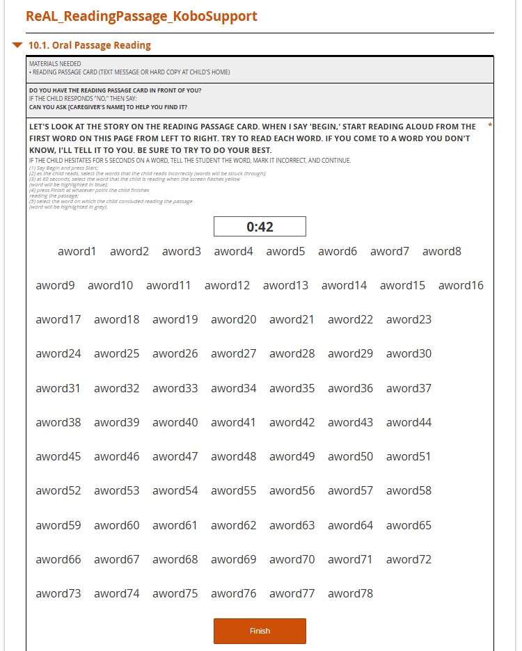 @Kal_Lam unfortunately, the issue persists on the enumerators’ tablets. I uploaded the form to https://validate.enketo.org/ to see if there were any coding bugs and it did provide the following output. I am uploading the full form here. I couldn’t translate the output result to target the issue. Are you able to identify the issue? I don’t know if this issue is causing the idiosyncratic issue of the literacy widget rendering correctly on some devices and not others, but it’s possible …