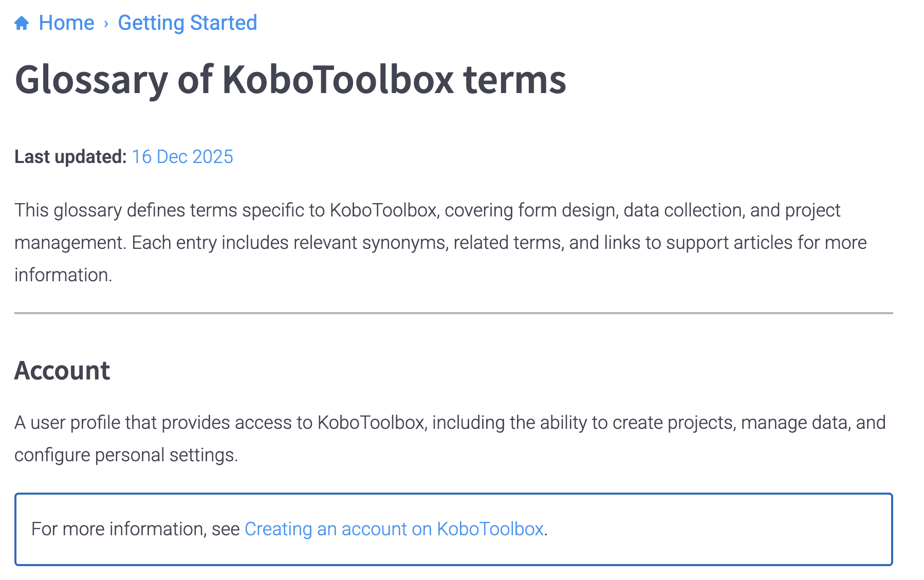 We are happy to share that we have recently added a new Glossary of KoboToolbox terms to our support site.