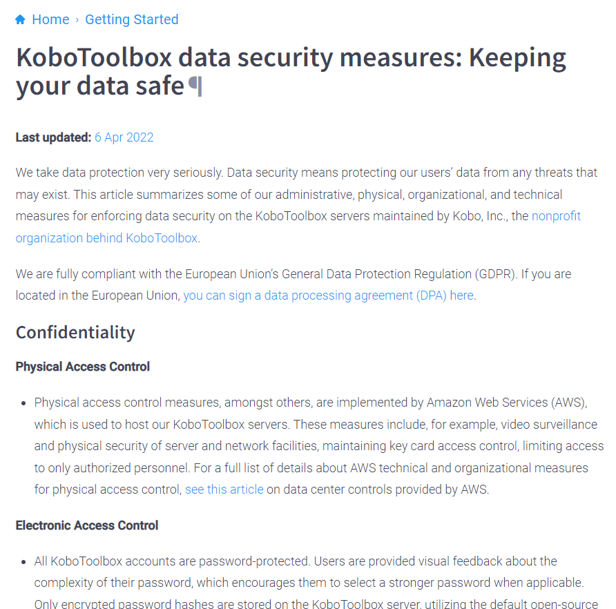 Would like to inform you that we have recently added a new support article KoboToolbox data security measures: Keeping your data safe to our support site.