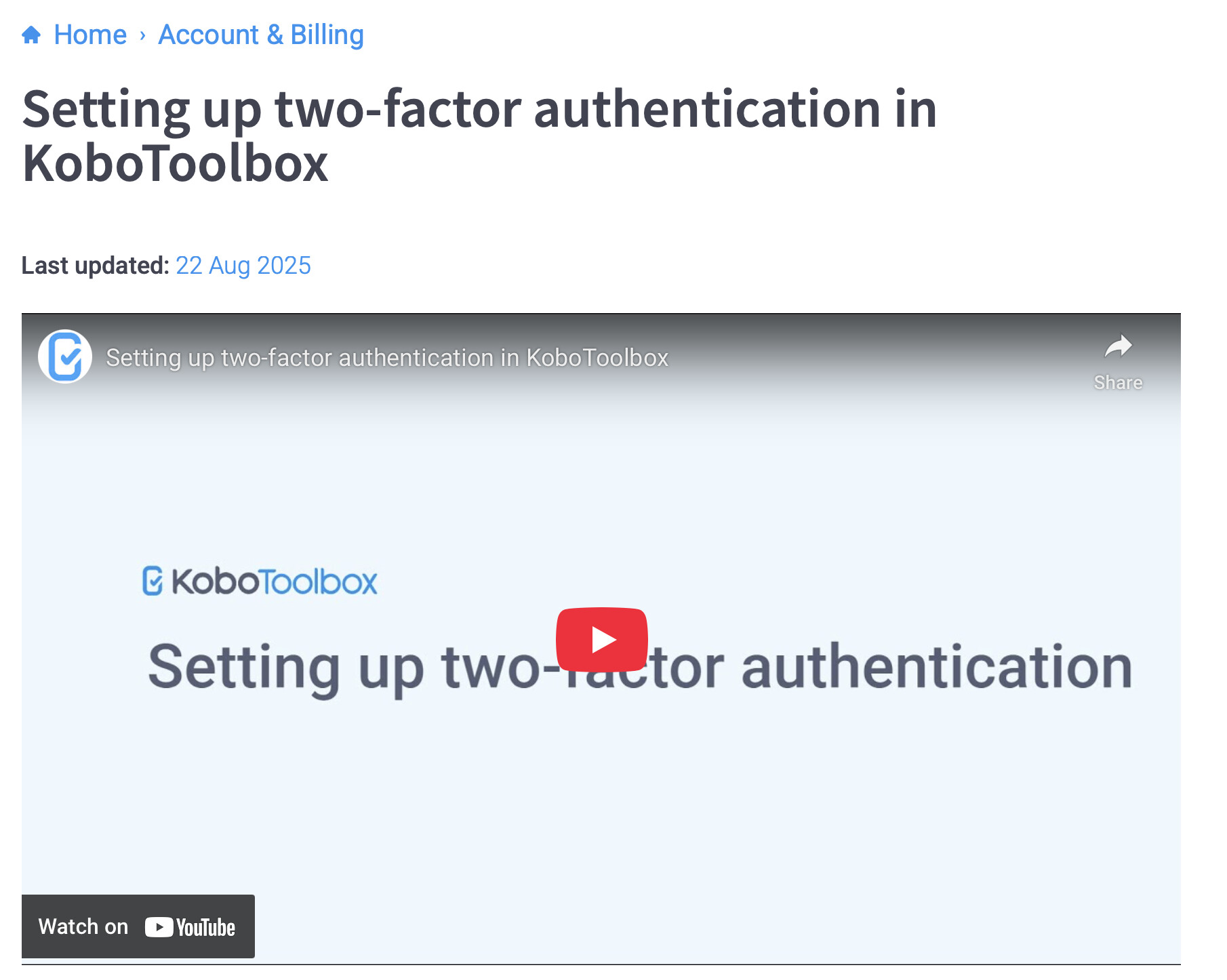 We are happy to share that we have recently added a new support article on Setting up two-factor authentication in KoboToolbox to our support site.