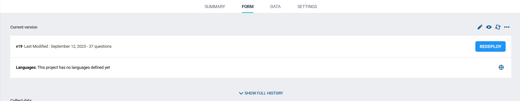 the main issue is that I am unable to clone any previous version. Even after opening the FORM tab and using “Show full history,” the clone option does not create any new project, and no download option appears.