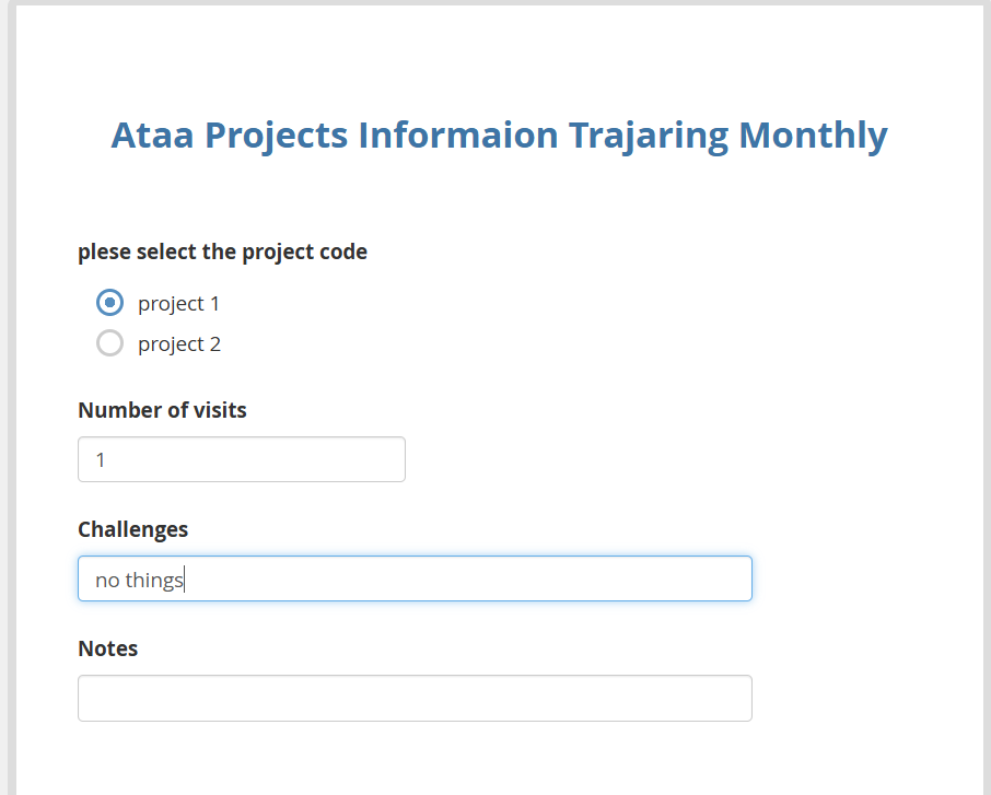 In this form, there is a question used to identify the project. Since all project activities in our working area are similar, the intention is to use one unified form for all projects.