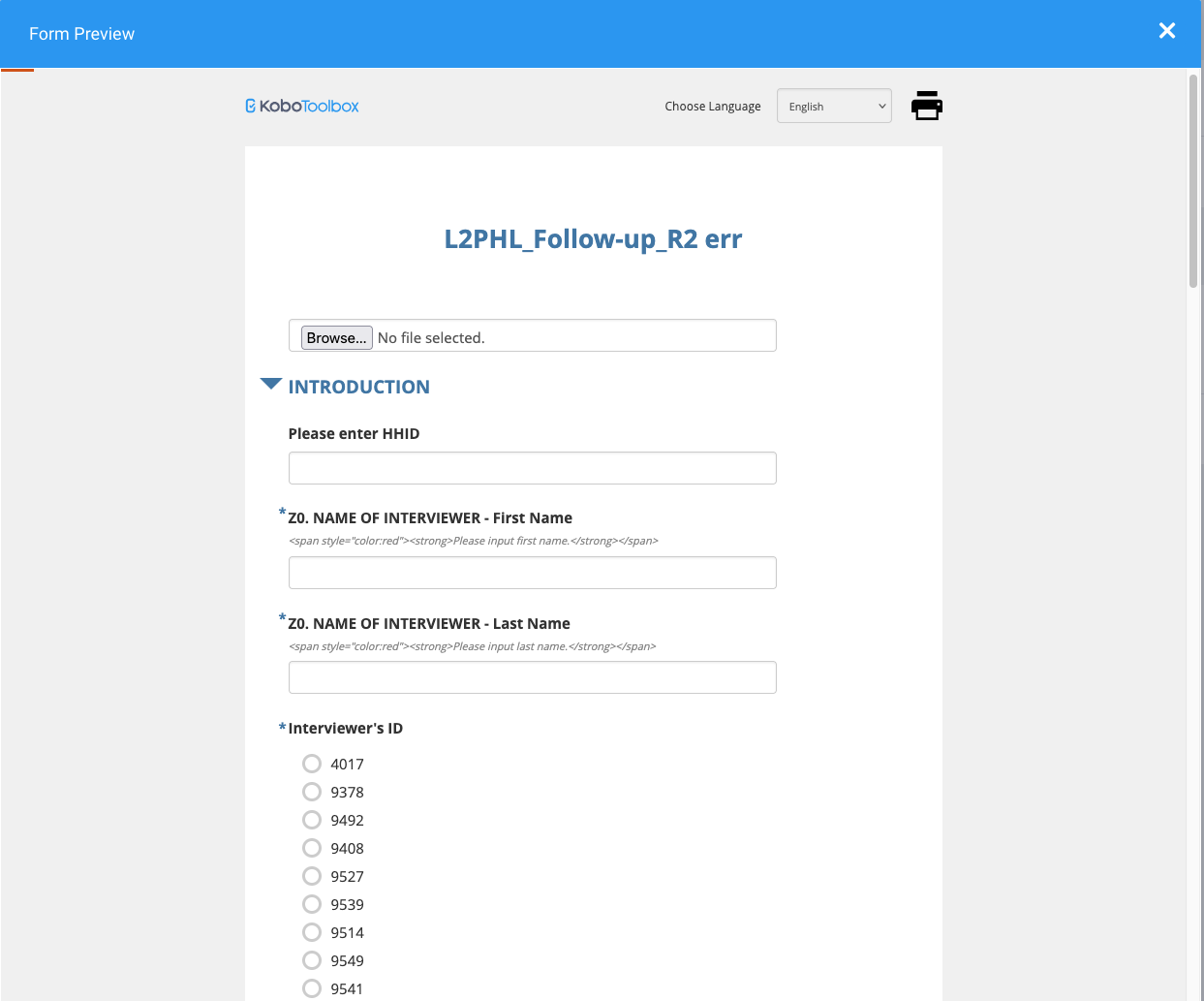 When I pruned out the additional languages, and significantly reduced the number of options in this one internal choice list, I was able to successfully deploy your form for Kobo [although it is missing a number of additional external required cvs files, so I could only preview it…].