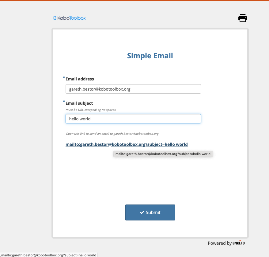 [You could in fact pretend to then ‘edit’ this submission, which would then bring it up again in Enketo and give you an actual clickable link (!), but that’s probably a bit too obtuse to serve your purpose]
