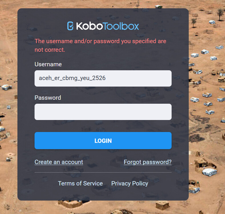 Although I have been trying to be carefully write the username and password, I can not get into kobotoolbox. Kindly provide your assistance on this matter.